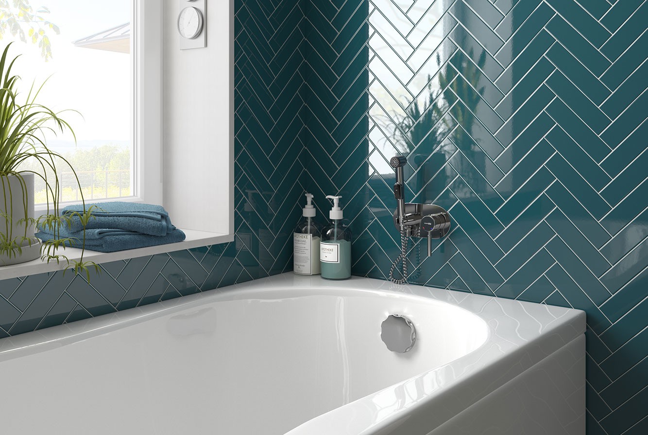 Плитка настенная 20x5 Costa Nova Onda Banyan Blue Glossy 28491 Equipe
