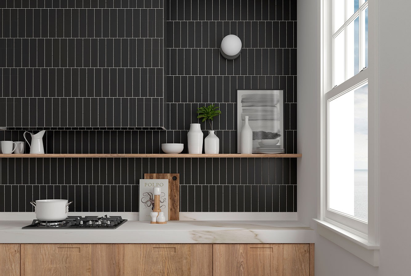 Плитка настенная 20x5 Costa Nova Onda Black Matt 28521 Equipe