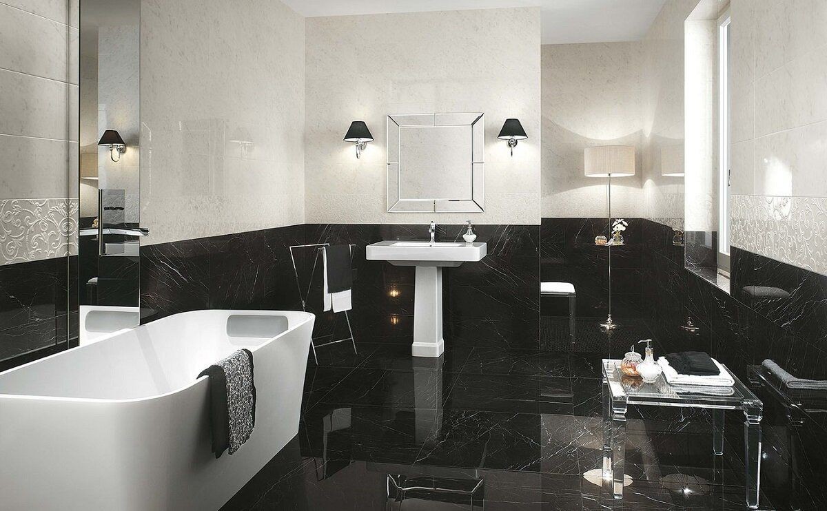 Плитка 150x75 10мм Roma Diamond 150 Nero Reale Brillante Fnef глянцевая черный мрамор Fap Ceramiche
