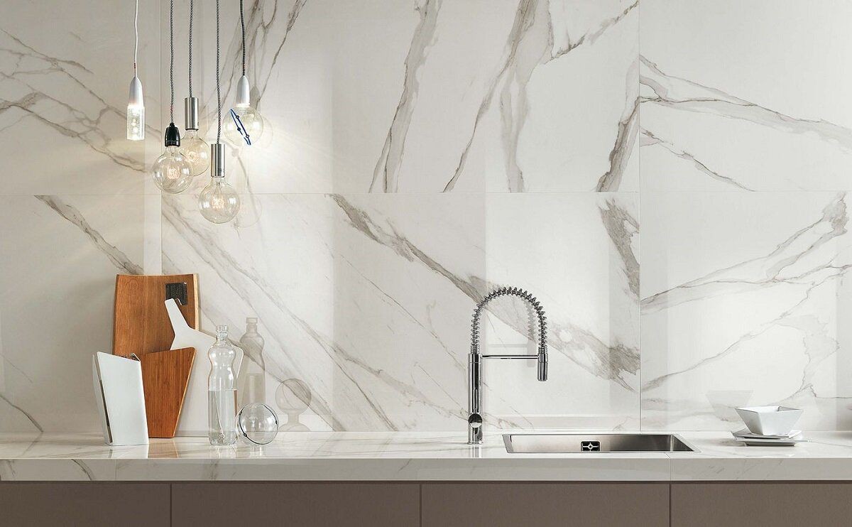Плитка 160x80 Roma Diamond Statuario Brill Fpwa глянцевая белый мрамор Fap Ceramiche