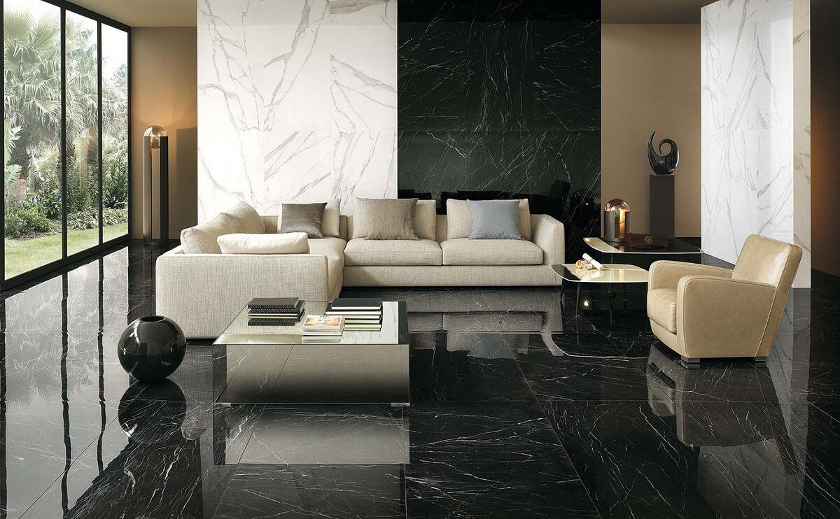 Плитка 160x80 Roma Diamond Nero Reale Brill Fpxc глянцевая черный мрамор Fap Ceramiche