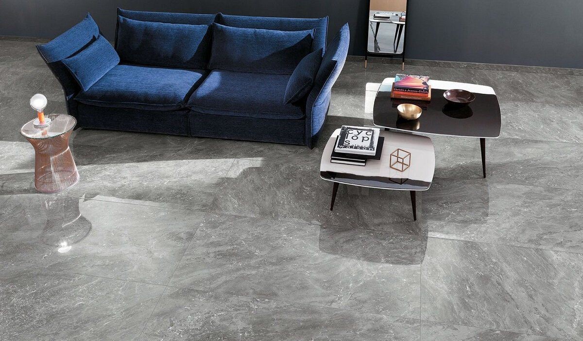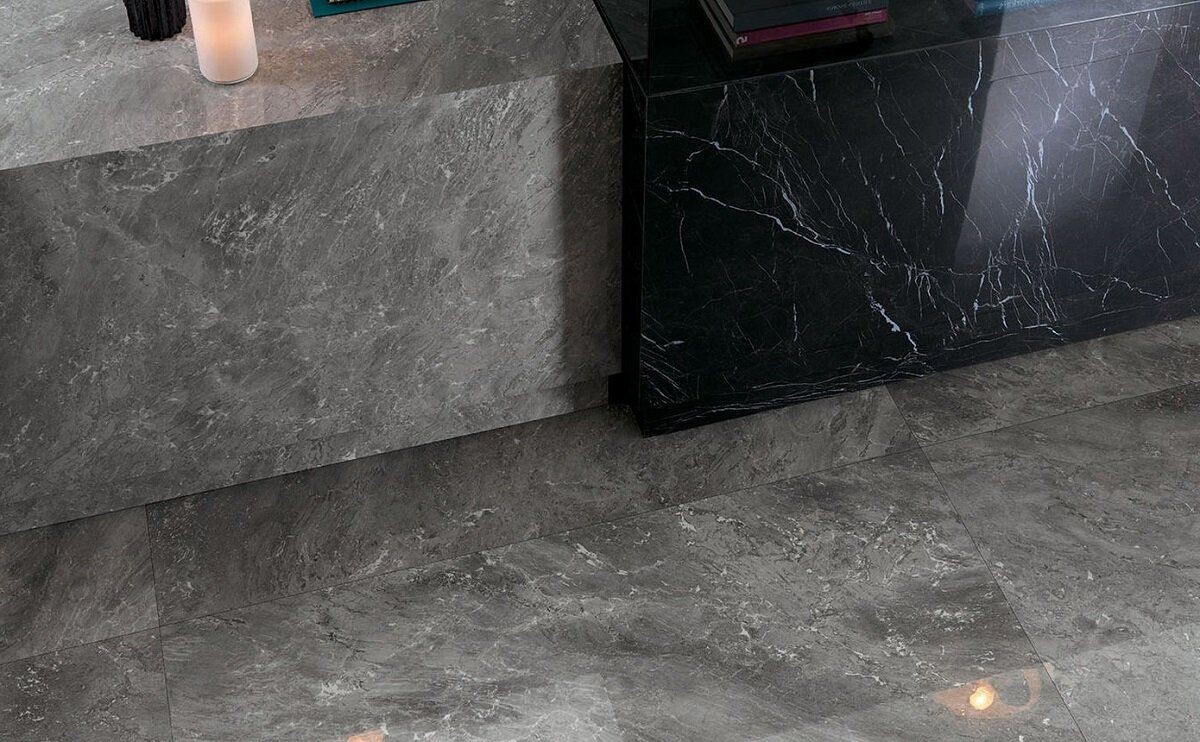 Плитка 160x80 Roma Diamond Grigio Superiore Brill Fpvq глянцевая серый мрамор Fap Ceramiche