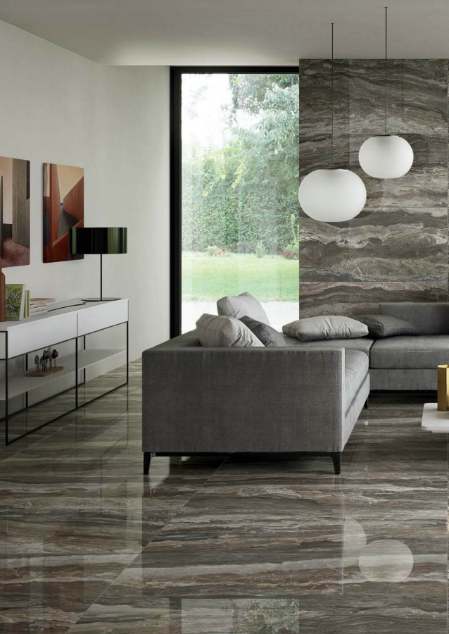 Керамогранит 118x59 Gemstone taupe rett глянцевая коричневый Ascot
