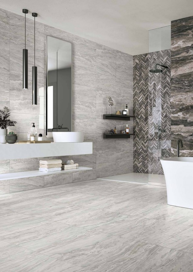 Керамогранит 120x60 10мм Gemstone silver rett матовая серый Ascot