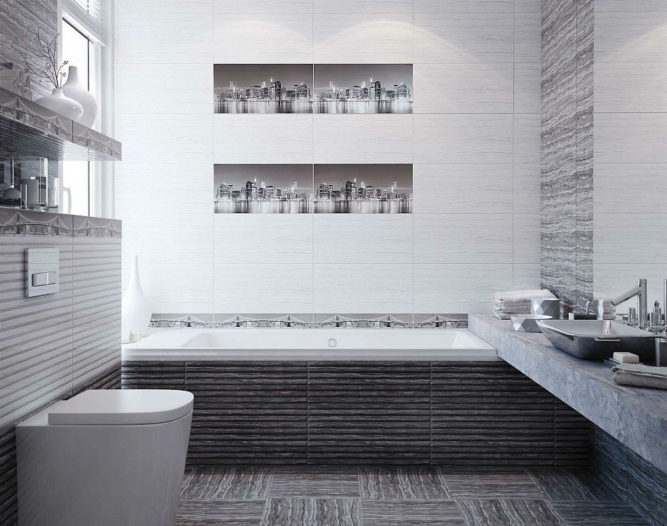 60x30 Сити настенная серая рельеф глянцевая светло-серый